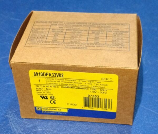 Contactor, Definite Purpose, 30A, 3 pole, 20 HP at 575 VAC, 3 phase, 110/120 VAC 50/60 Hz coil, open