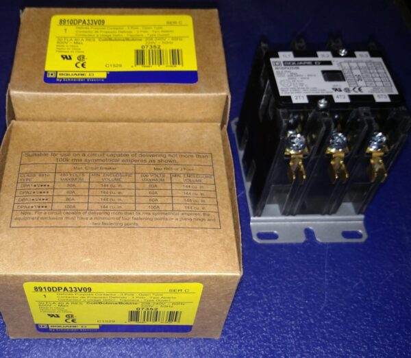 Contactor, Definite Purpose, 30A, 3 pole, 20 HP at 575 VAC, 3 phase, 208/240 VAC 60 Hz 220 VAC 50 Hz coil, open