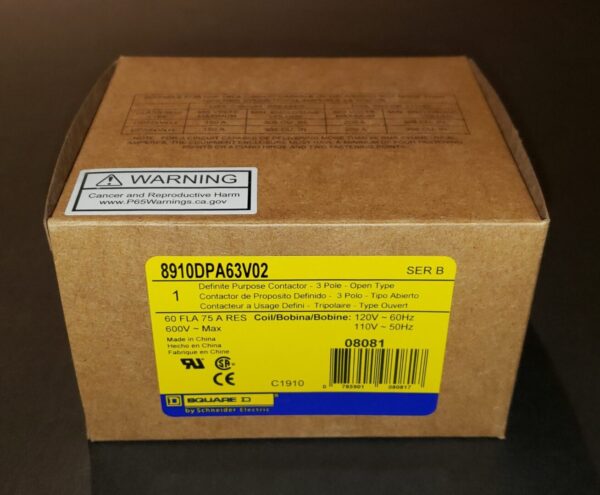 Contactor, Definite Purpose, 60A, 3 pole, 30 HP at 575 VAC, 3 phase, 110/120 VAC 50/60 Hz coil, open