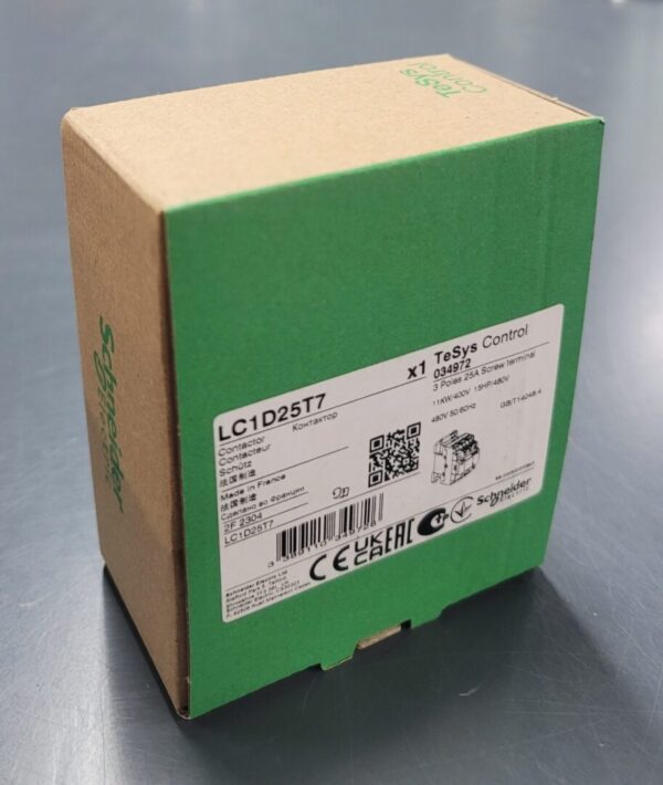 IEC contactor, TeSys Deca, nonreversing, 25A, 15HP at 480VAC, up to 100kA SCCR, 3 phase, 3 NO, 480VAC 50/60Hz coil, open
