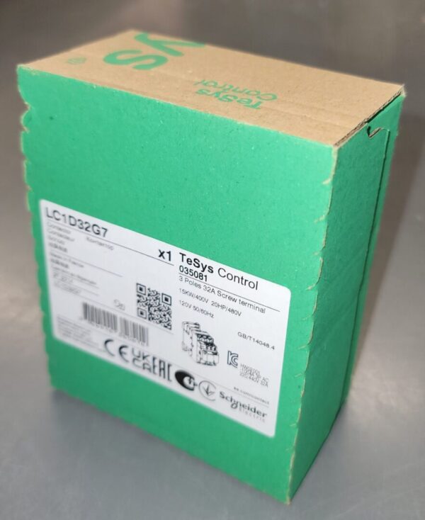 IEC contactor, TeSys Deca, nonreversing, 32A, 20HP at 480VAC, up to 100kA SCCR, 3 phase, 3 NO, 120VAC 50/60Hz coil, open