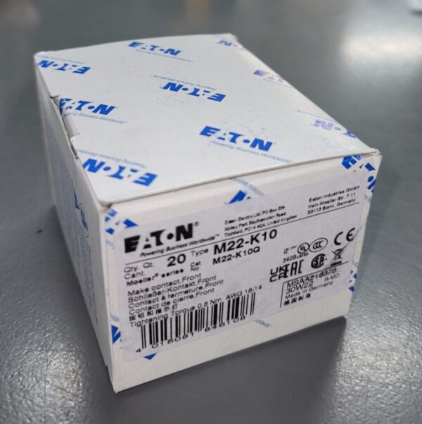 Eaton M22 Contact Block, 22.5 mm, Front, Screw, Button: Black, NO, IP66, NEMA 4X, 13